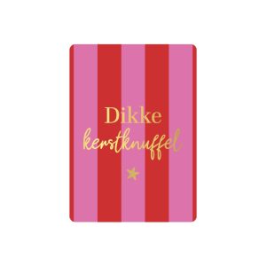 KP Kerst kaart A6 `Dikke kerstknuffel` roze en rode strepen
