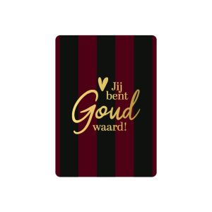 KP klein kaartje A7 , `Jij bent goud waard` burgundy zwarte strepen