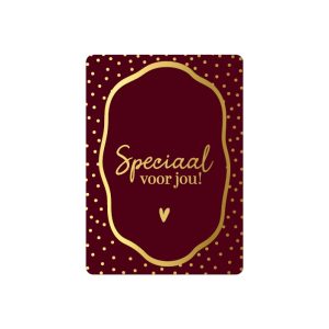 KP klein kaartje A7 , `Speciaal voor jou` burgundy met gouden hartje en stipjes