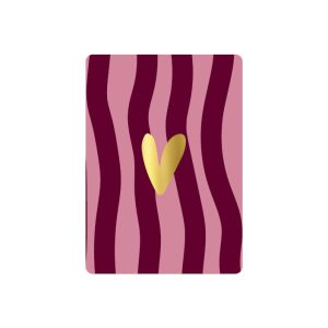 KP klein kaartje A7 , `Goud hartje op donker paars / roze streep waves`