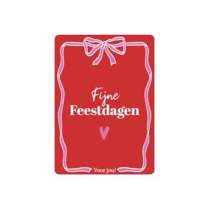 KP klein kaartje A7 , `Fijne feestdagen` rood met roze strik