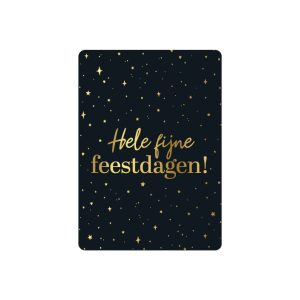 KP klein kaartje A7 , `Hele fijne feestdagen!` gouden sterretjes op zwart
