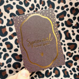 KP klein kaartje A7 , `Speciaal voor jou` donker grijsbruin met gouden hartje en stipjes