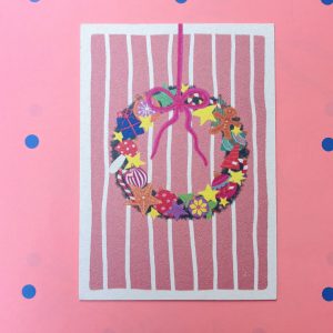 Kaartenpret, A6 kerst kaart van karton `Kerstkrans met kerstdecoratie`