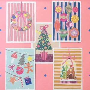 Kaartenpret, A6 kerst kaart van karton `Kerst decoratie slinger`