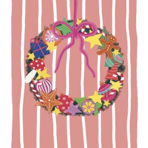 Kaartenpret, A6 kerst kaart van karton `Kerstkrans met kerstdecoratie`