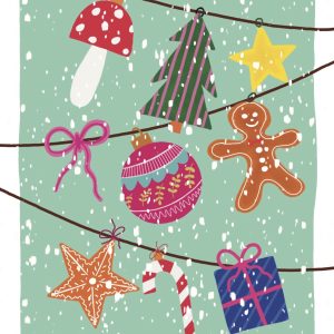 Kaartenpret, A6 kerst kaart van karton `Kerst decoratie slinger`