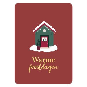 Kerstkaart A6 `Warme feestdagen` huisje in de sneeuw`