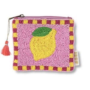 Super leuke etui, volledig bedekt met kraaltjes in de kleuren roze rood en groen.