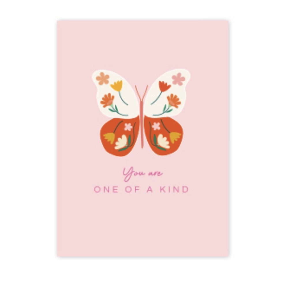 BW kaart A6 ` Vlinder roze rood` you are one of a kind