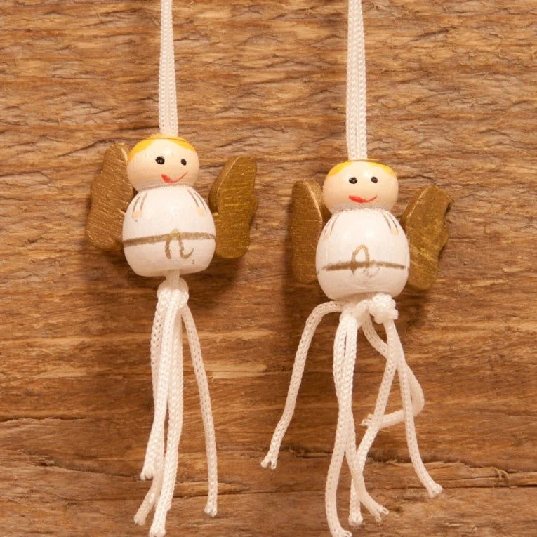Decoratie engeltjes gelukshangertjes goud met wit ( +/_) 15mm , per 4 stuks