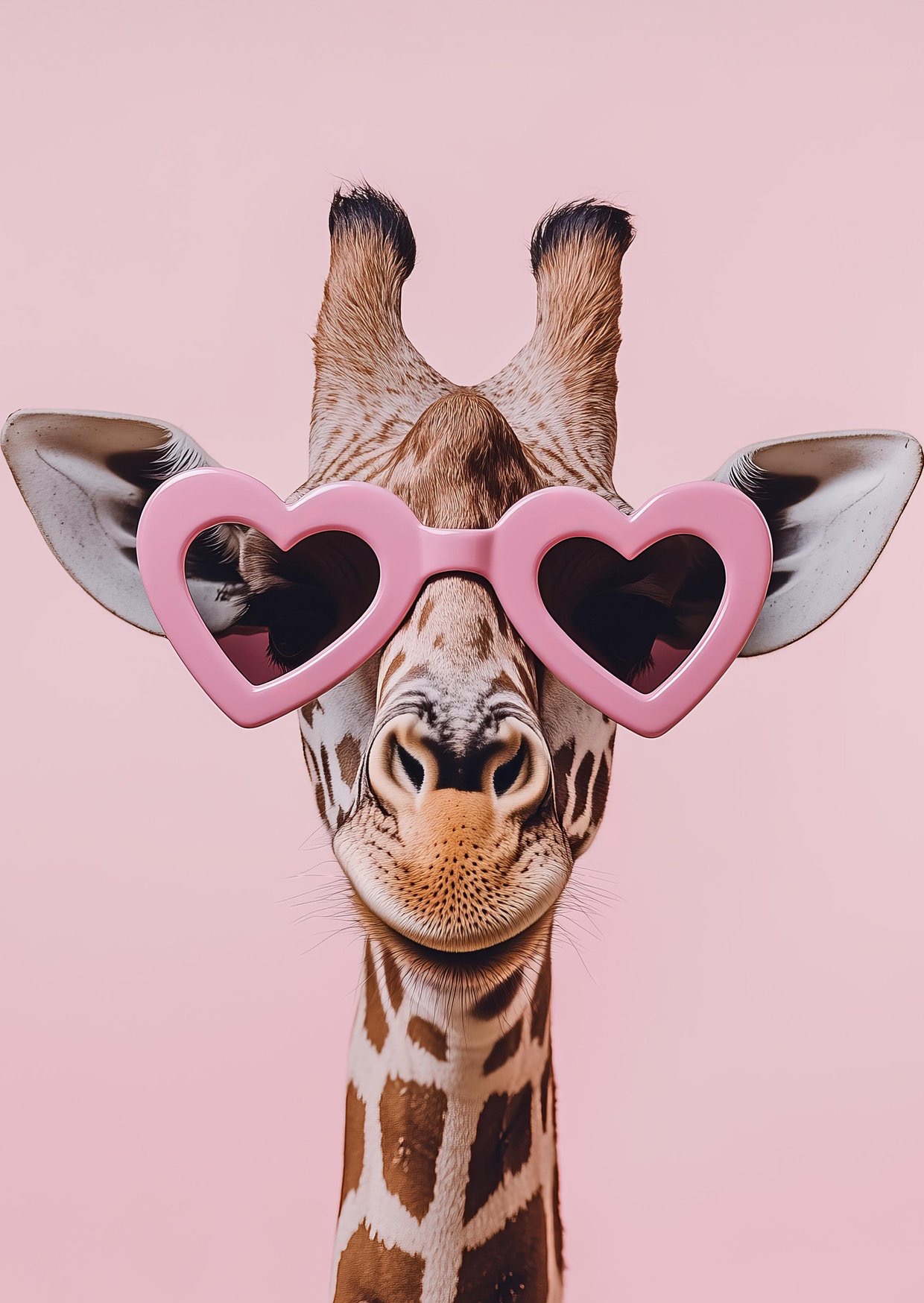 Op deze kaart staat  een lieve giraf met een roze hartjes zonnebril.