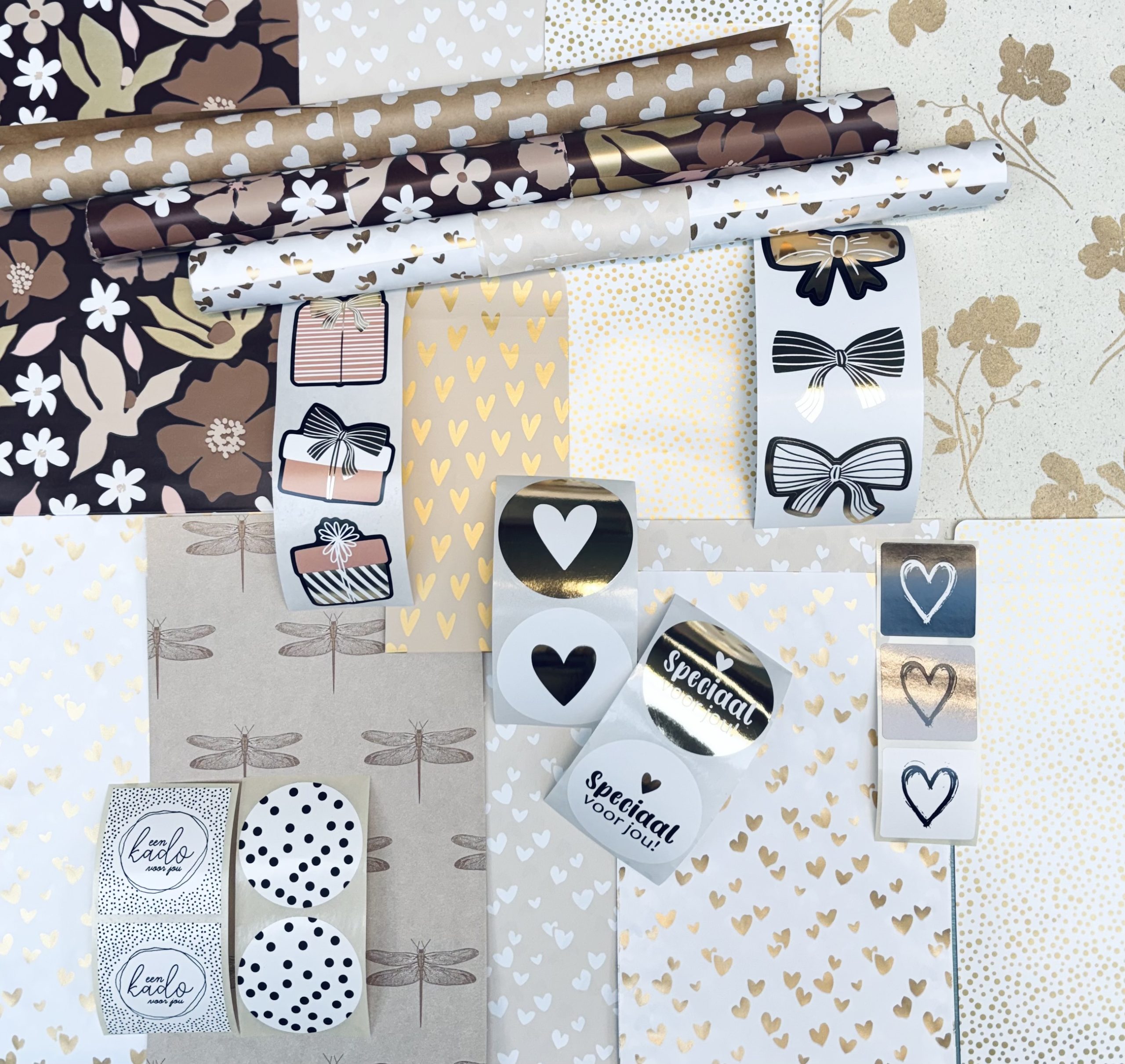 Inpakset `Neutraal` bruin beige goud zwart wit
