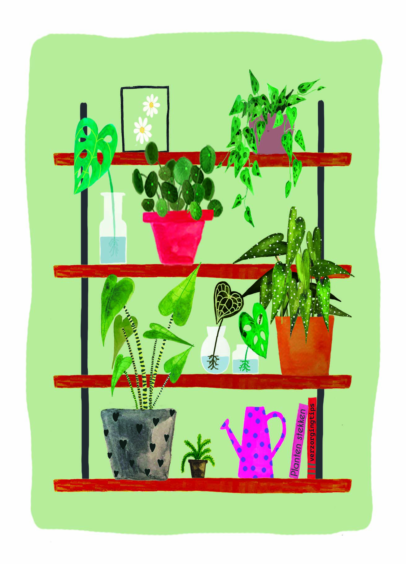 Kaartenpret, A6 kaart van karton `Kast met planten en gieter`
