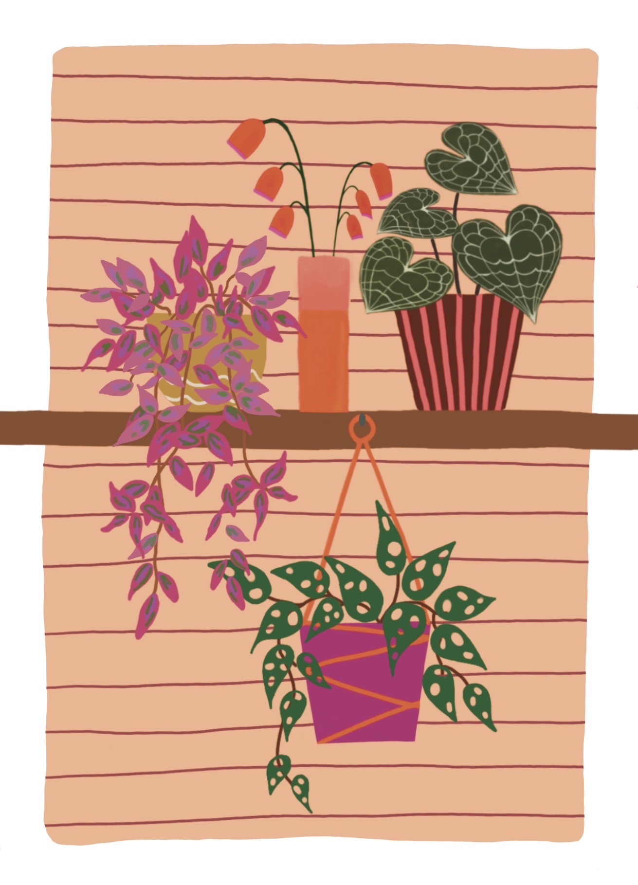 Kaartenpret, A6 kaart van karton `Planten en bloemen op plank`