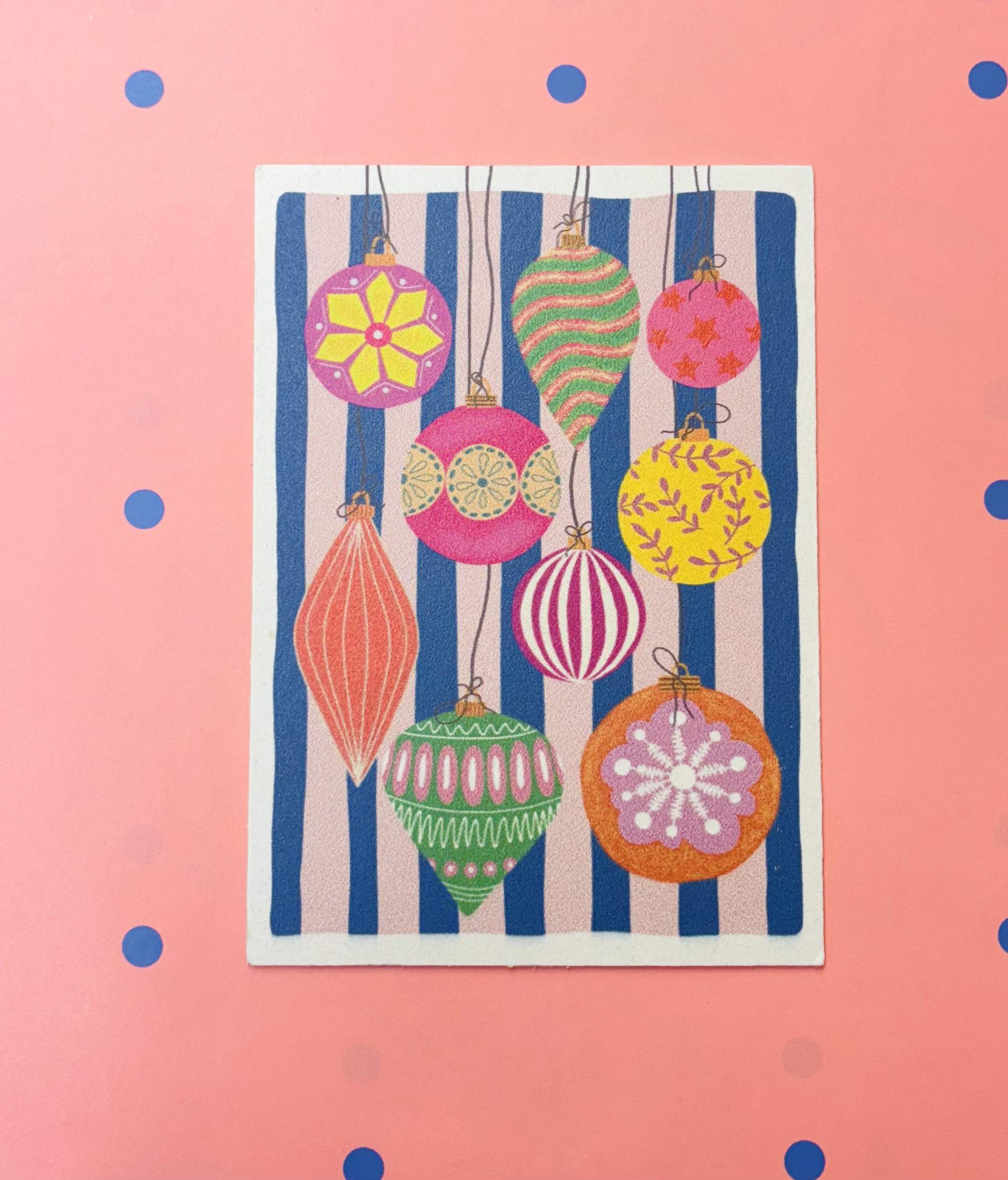 Kaartenpret, A6 kerst kaart van karton `Kerst ballen`