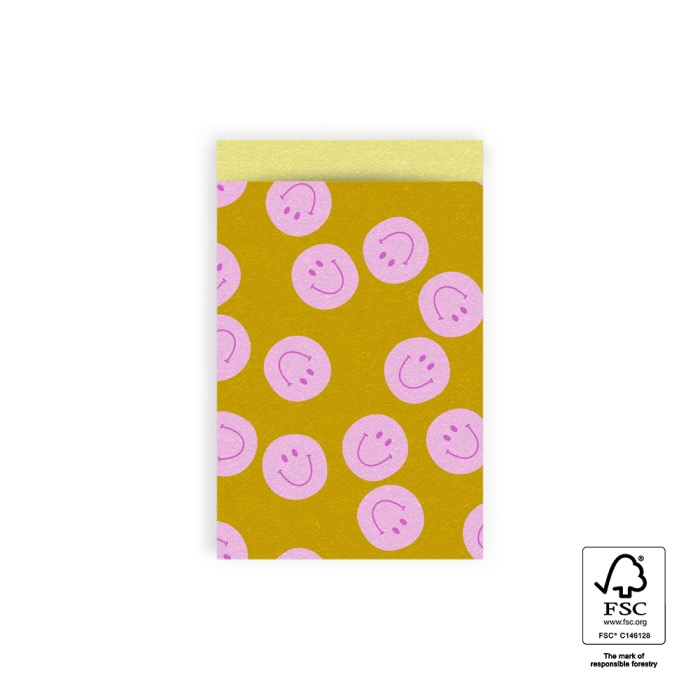 Kadozakje, Medium 12cmx19cm `Smiley`s oker geel / roze` ( per stuk )