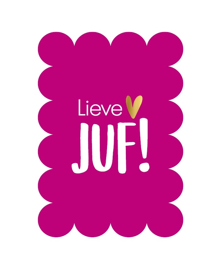 KP Kaart A6 bubble `Lieve juf!` met gouden hartje en witte letters
