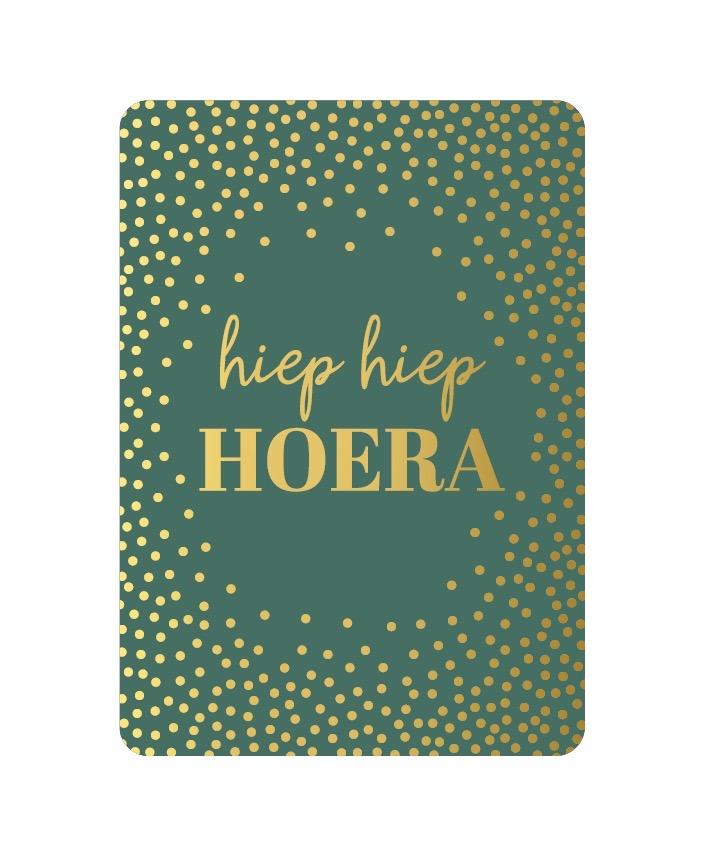 KP kaart A6 `hiep hiep hoera` gouden stipjes op groene basis