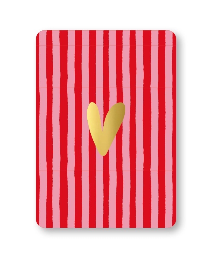 KP kaart A6 `Roze rode streep met gouden hartje`