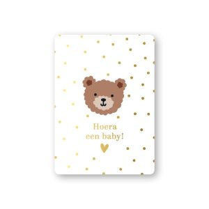 KP kaart A6 `Welkom lieve kleine baby` beige met wit en gouden hartje