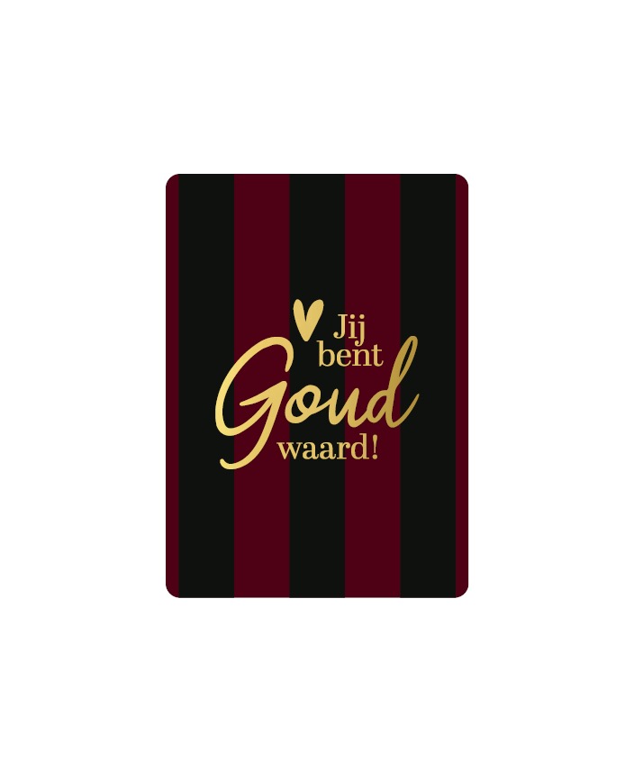 KP klein kaartje A7 , `Jij bent goud waard` burgundy zwarte strepen