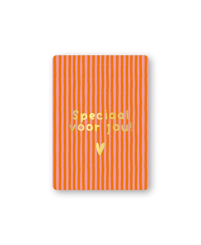 KP klein kaartje A7 , `Speciaal voor jou` roze oranje verticaal streepje