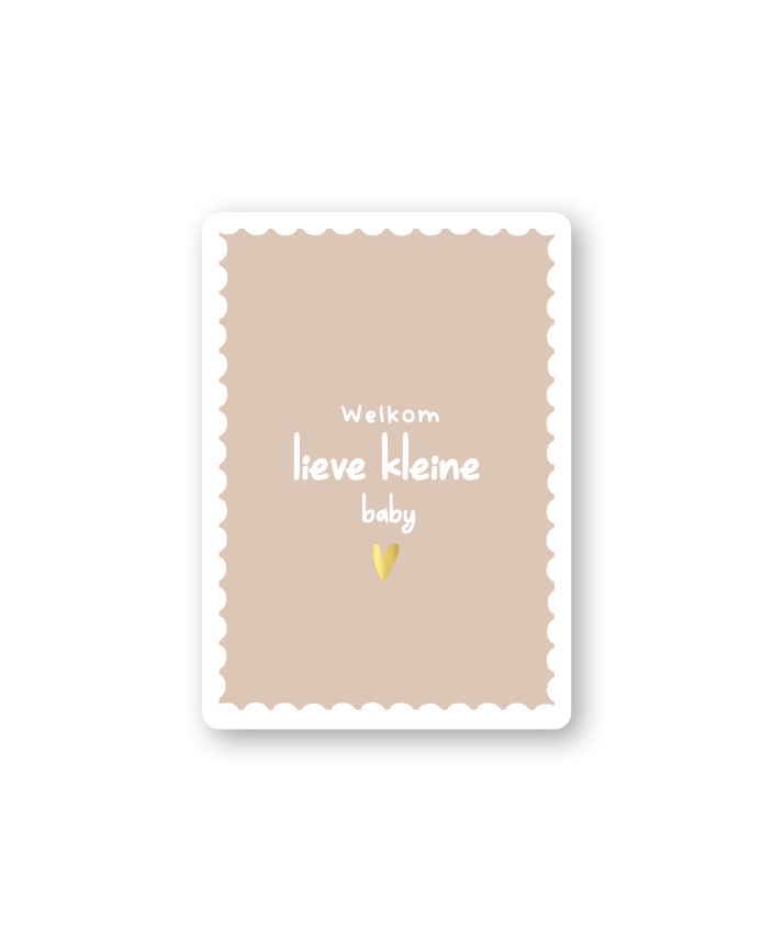 KP klein kaartje A7 , `Welkom lieve kleine baby` beige met klein goud hartje
