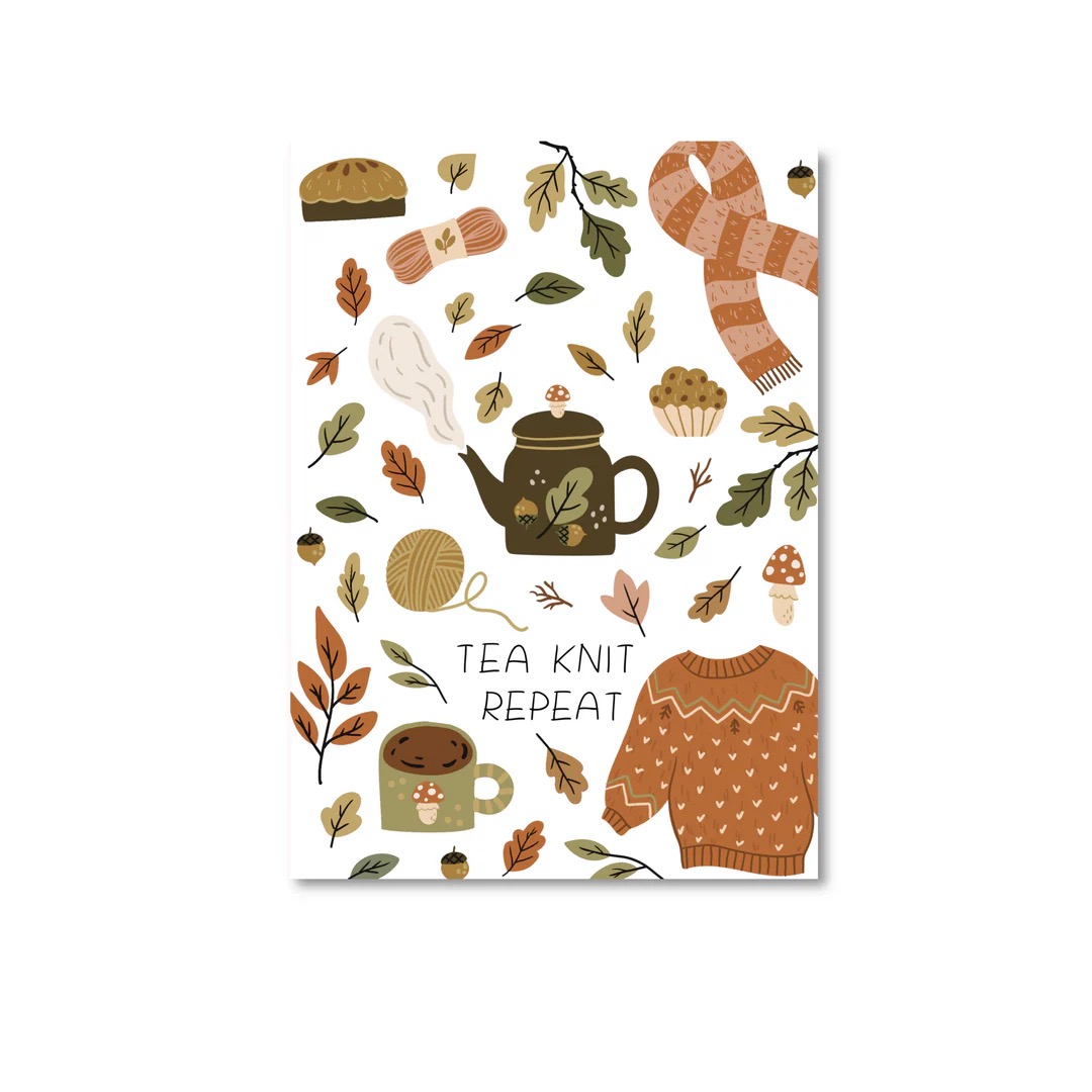 OnlyHappyThings , kaart A6 `Herfst `Tea knit repeat`