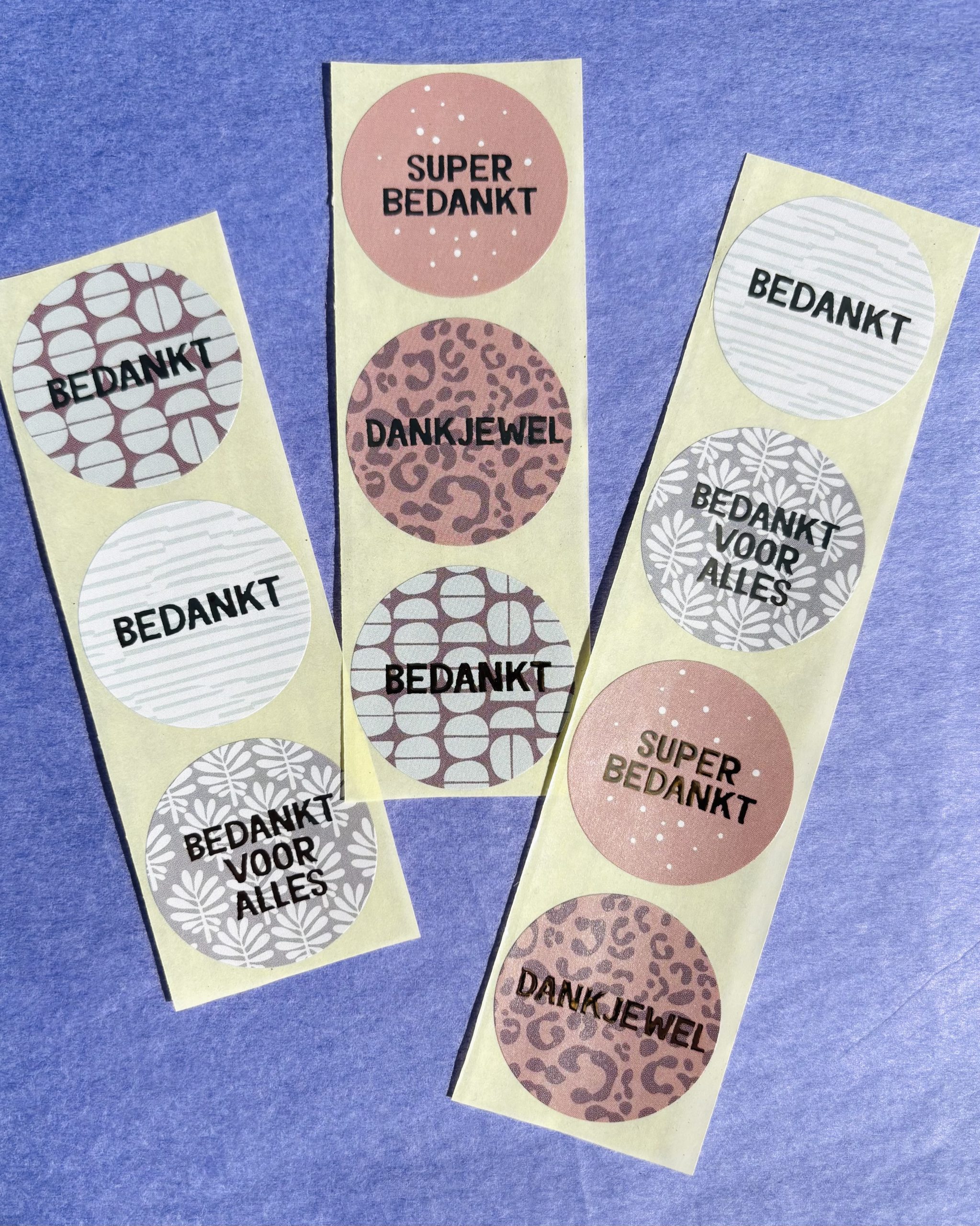 Sticker rond 35mm, kleur en print WARM ` Bedankt ` ( mix van 10 stuks )