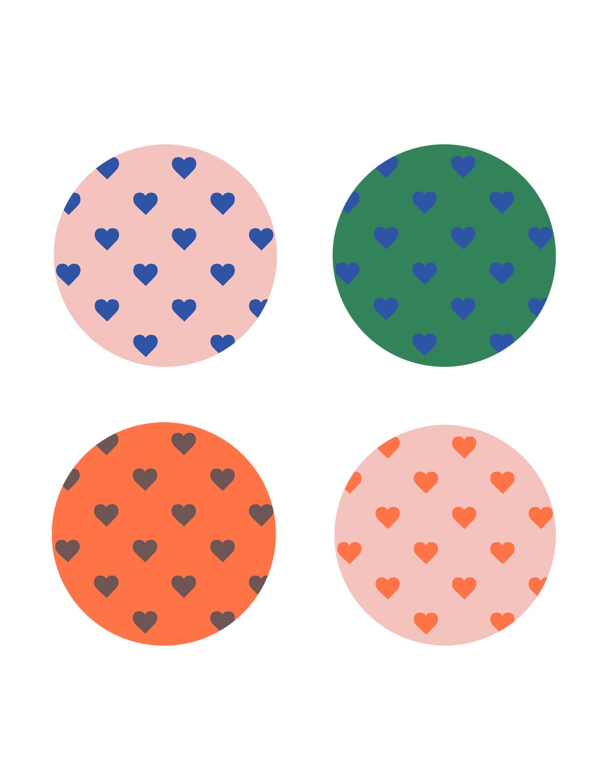 Sticker rond 50mm `Roze groen oranje met hartjes print` ( mix van 10 stuks )