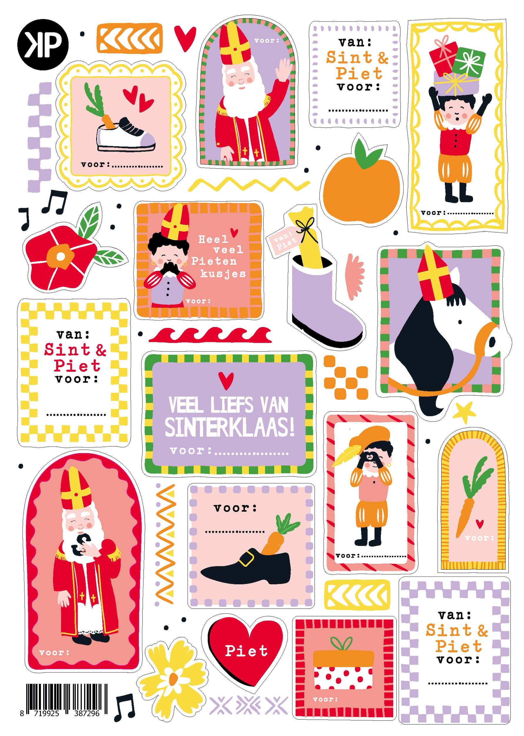 Stickervel A5 met 20 stickers , `Sinterklaasfeest` sint piet paard