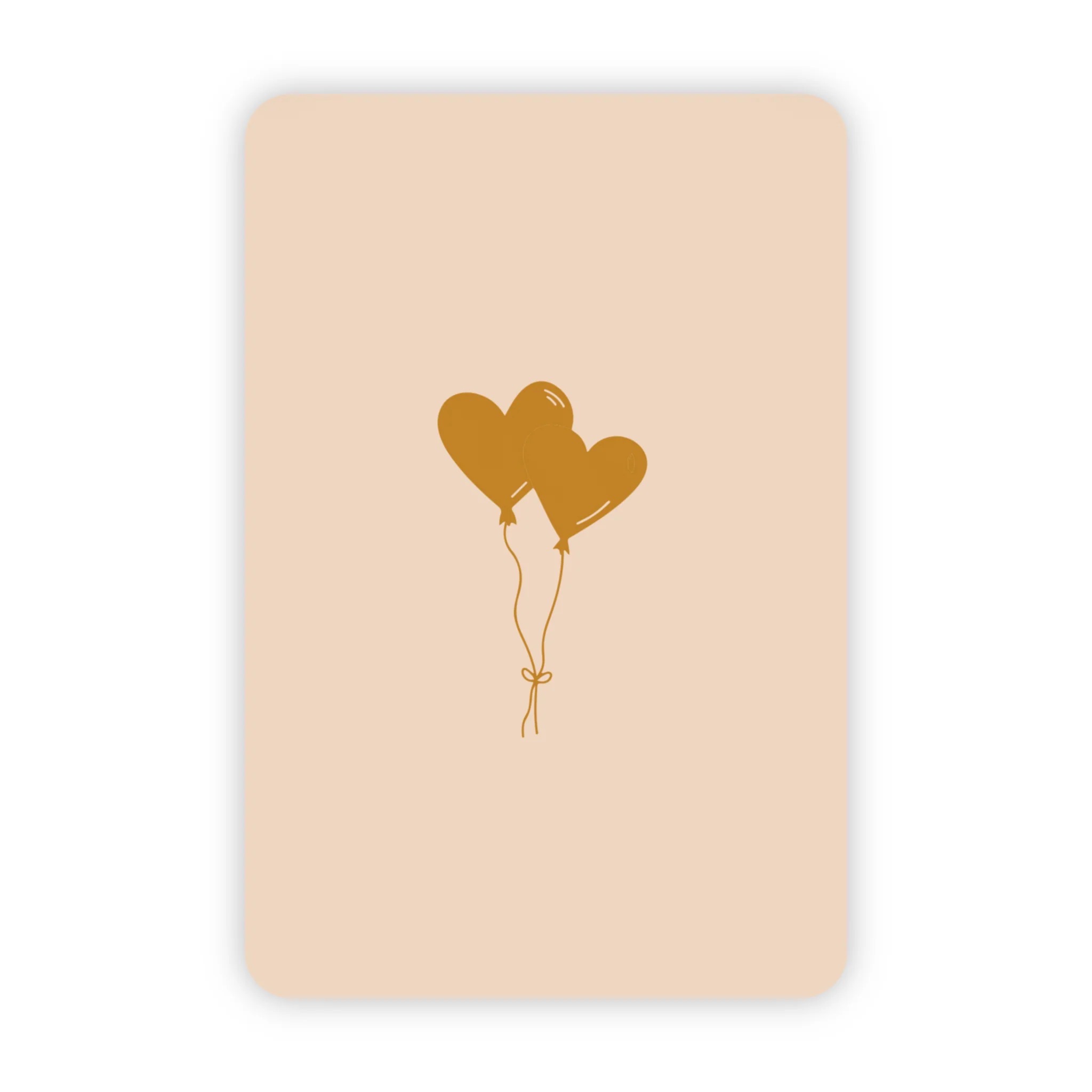 Wensjegeluk, kaart A6 met goud accent `Gouden hartjes ballonnen op beige kaart`