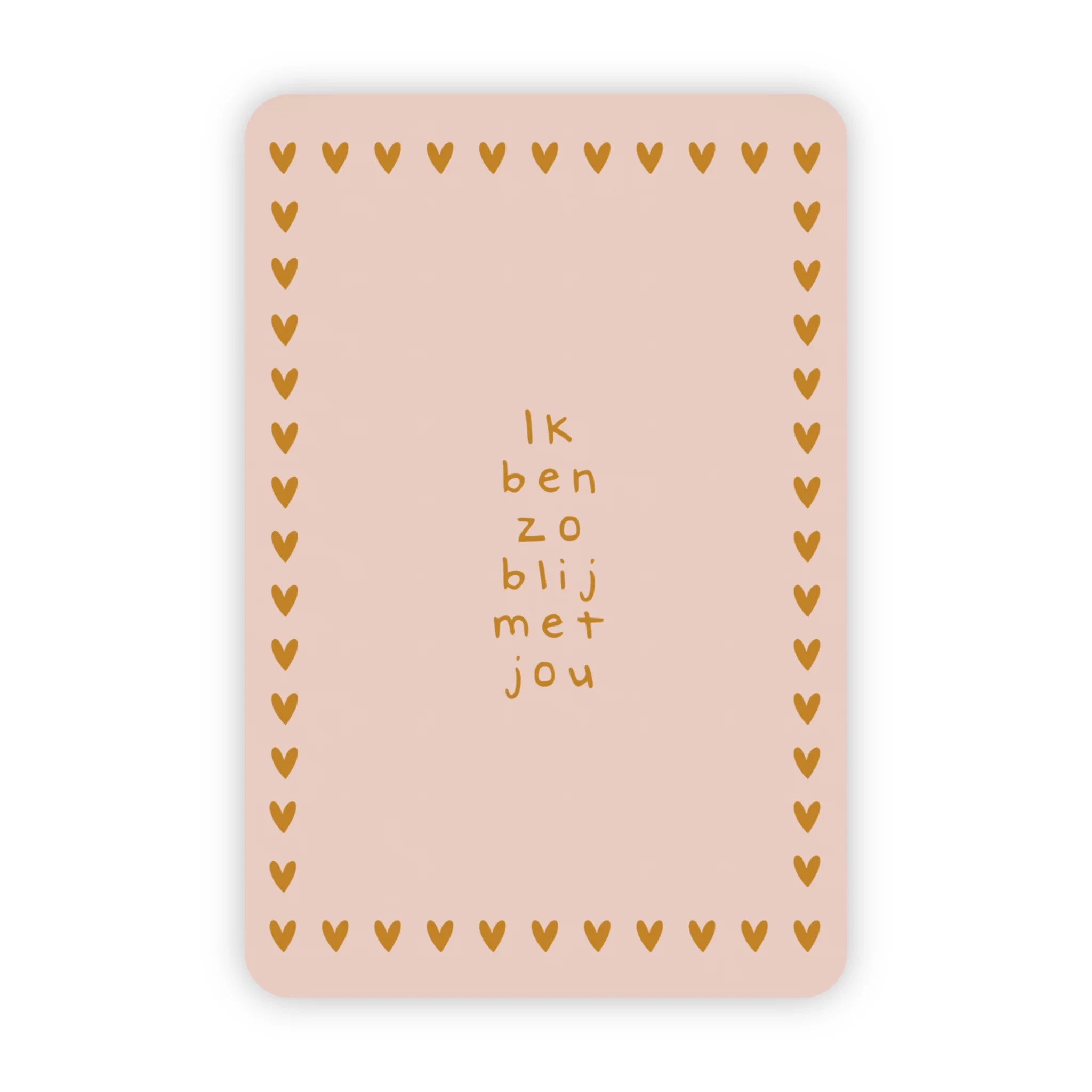 Wensjegeluk, kaart A6 met goud accent `Ik ben zo blij met jou` hartjes