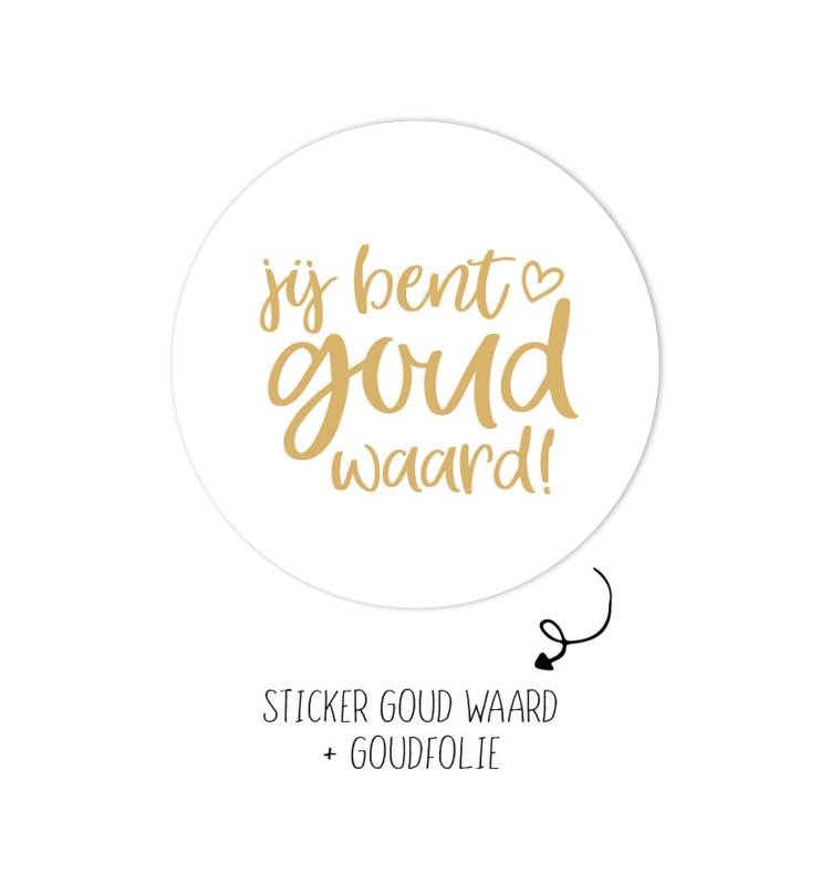 Winkeltje van Anne , Sticker rond 45mm `Jij bent goud waard` goud op wit ( per 10 stuks )